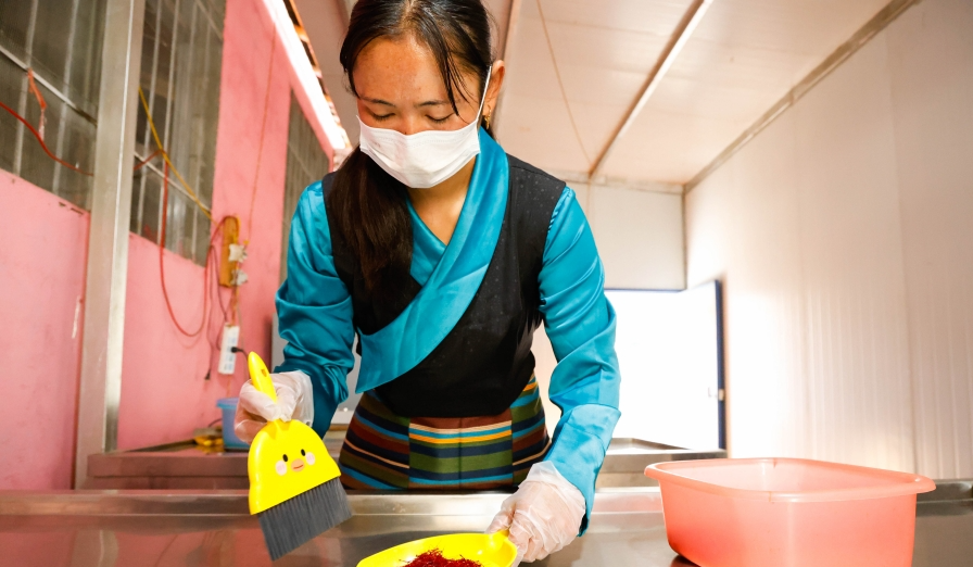 农户收集已经烘干的藏红花花丝 刘云 摄