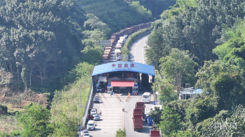 运输车辆经中老边境勐满口岸出入境(央广网发 李扬 摄)