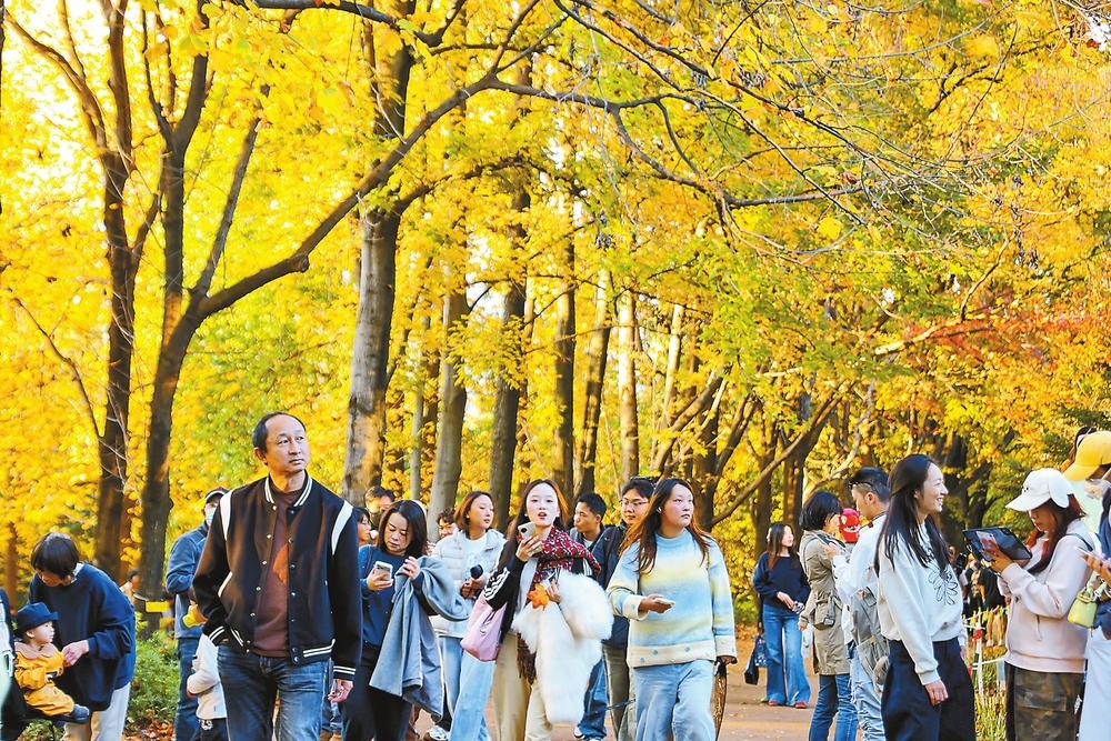 近日,昆明植物园西园的枫香树迎来最佳观赏期。788棵枫香树披上了红、黄、绿交织的“彩衣”,在冬日暖阳下构成一幅斑斓画卷,吸引了众多市民和游客前来漫步赏景。(记者 胡妤雅)