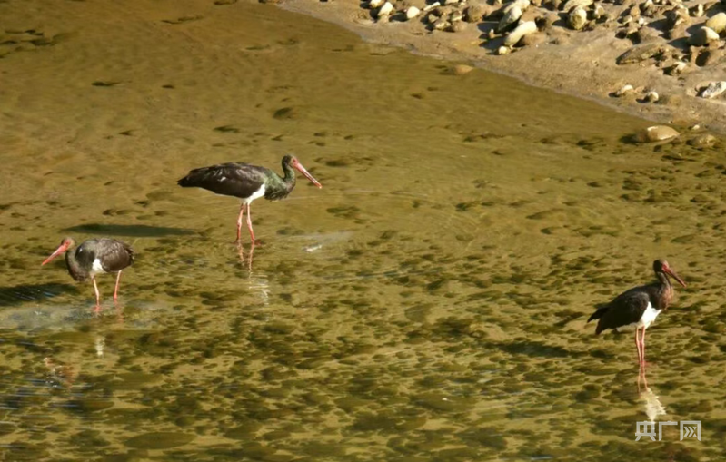 央广网德宏12月23日消息(记者 魏文青)近日,有着“鸟中大熊猫”之称的国家一级保护野生动物黑鹳在云南德宏州勐养龙江河谷被清晰记录到野外活动影像。画面中,3只黑鹳在浅滩溪流间觅食、休憩,这是当地首次完整捕捉到黑鹳成群活动的影像资料,反映出区域生态环境质量持续向好。