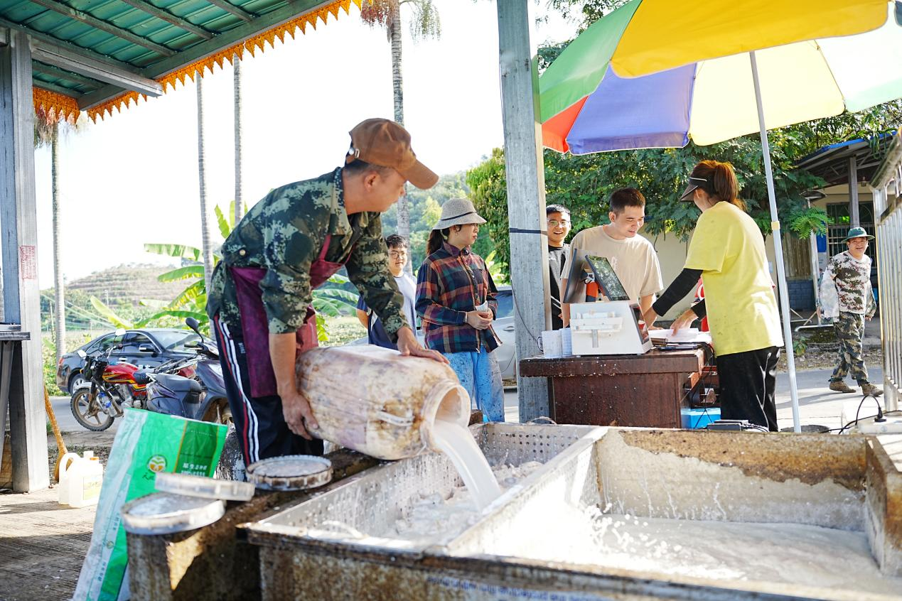 为破解产业发展桎梏,景哈乡精准发力,推行“党组织+村集体+强村公司+大户+农户”的多元联动变革,同时依托乡属强村公司景洪市景哈乡金航农村集体经济实业有限责任公司,引入西双版纳现代数字科技有限公司研发的“璟橡”智慧收购平台,在搭亥、莫南、景哈3个村委会建成并运营3个标准化智能收胶点。胶农卖胶只需完成“扫码登记—蓝牙称重—精准测胶—线上结算”四步流程,全程5分钟之内即可完成,较传统收购效率大幅提升,彻底解决了长期困扰胶农的收购难题。