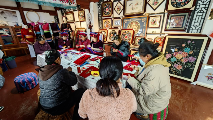 杨美池带领白族绣娘们赶制春节前的订货