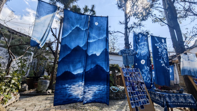 白井屋小院里的扎染作品