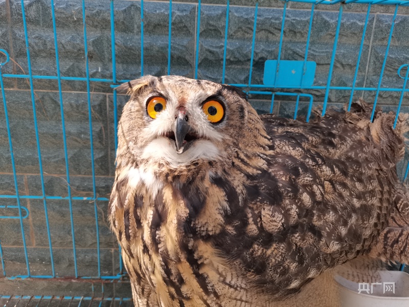 大眼睛的雕鸮 (央广网发 石林县公安局森警大队供图)