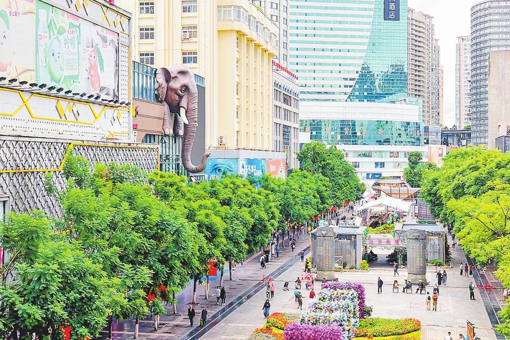 昆明南屏步行街“大象”创意外墙装置亮相。 记者 胡妤雅 摄