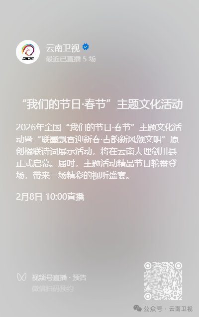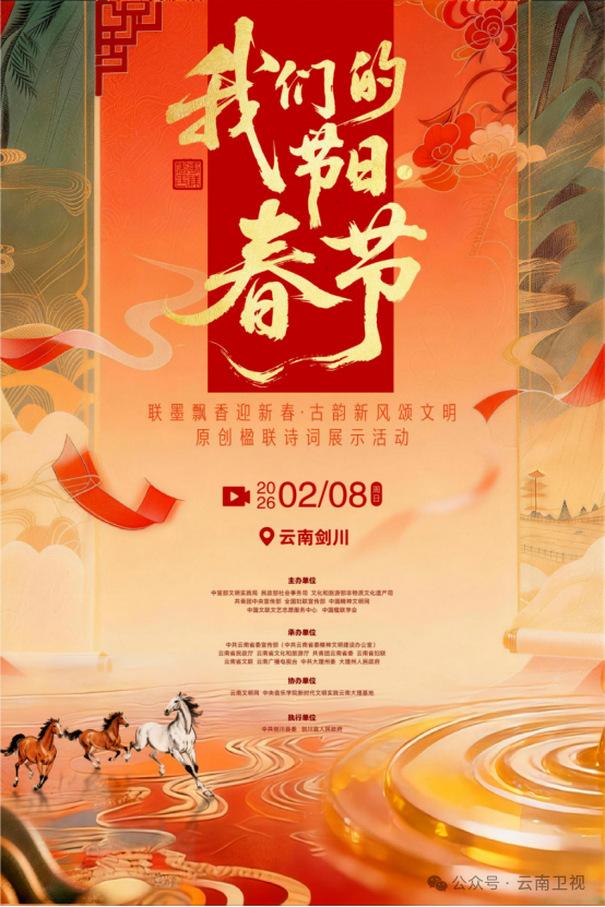 2月8日10:00,2026年全国“我们的节日·春节”主题文化活动暨“联墨飘香迎新春·古韵新风颂文明”原创楹联诗词展示活动,将在国家历史文化名城——云南大理剑川县正式启幕。