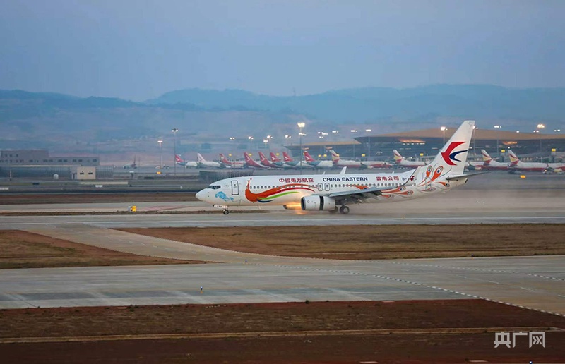 东方航空航班平稳降落在昆明长水国际机场东二跑道 (央广网发 云南航产投集团供图)
