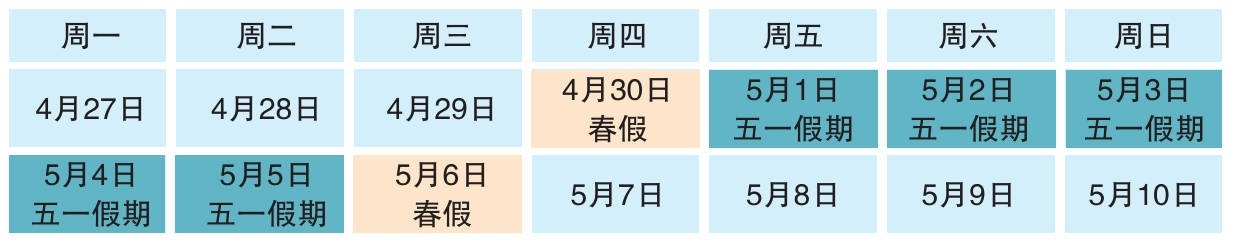 4月17日,记者从昆明市教育体育局获悉,为贯彻落实国家和省关于优化学生假期安排的决策部署,昆明市幼儿园、义务教育阶段学校将在4月30日和5月6日放春假,与“五一”劳动节假期(5月1日—5日)衔接,形成7天连续假期(4月30日—5月6日),5月7日(星期四)正常上课。