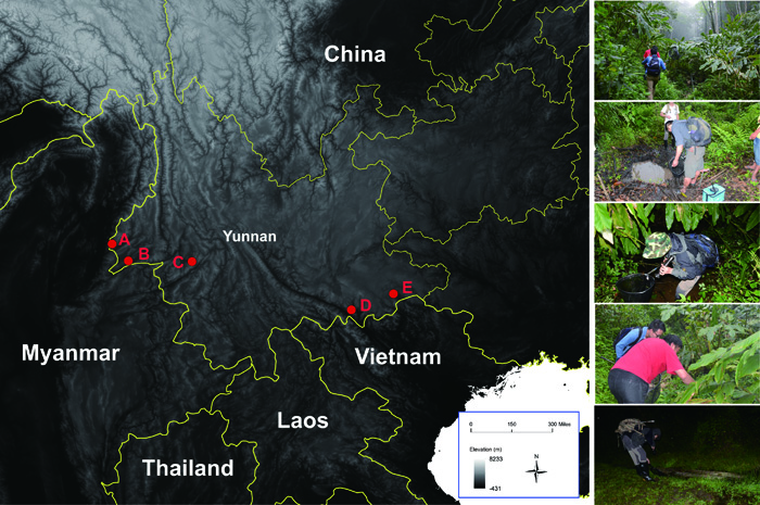 云南省毗邻越南、老挝、缅甸三国,有着漫长的边境线,总长为4060公里。云南南部的边境区域属于印缅生物多样性热点地区(Indo-Burma Biodiversity Hotspot),该地区有着极为丰富的野生动植物资源,但对这个地区“家底”了解还远远不够。一方面,云南的边境区域多山高谷深,交通不便,给调查工作带来了难度;另一方面,这一区域的物种很多是跨国界分布,给研究工作增加了复杂性。跨越边境区域的生物多样性研究存在诸多问题有待探索和解答。