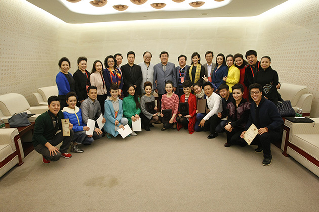 本届金钟奖组委会主任徐沛东,总评委会主任陈晓光、金铁霖,民族组评委和民族组决赛选手合影